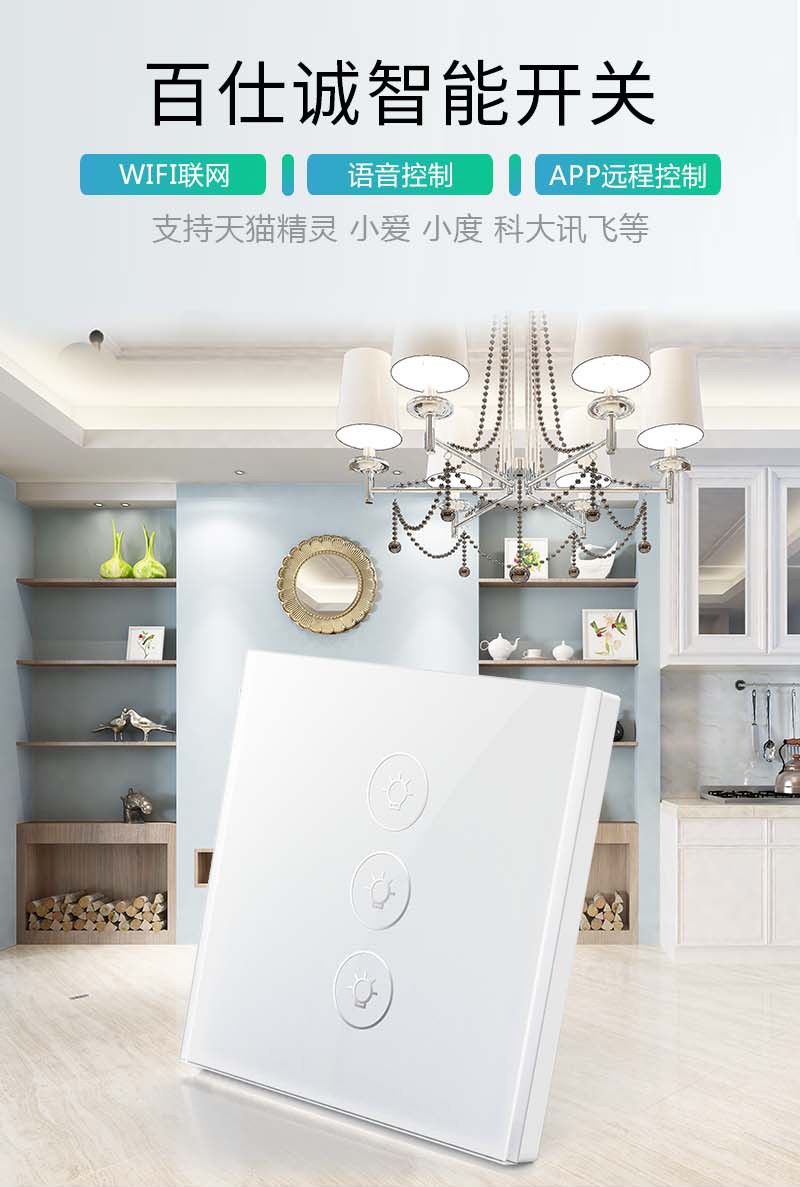 智能觸控平面鋼化玻璃式三位開關(guān)面板_百仕誠