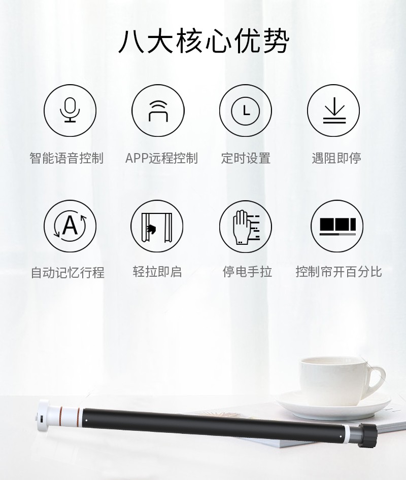 無線窗簾WIFI語音控制神器涂鴉智能電動窗簾伴侶羅馬桿窗簾助力器