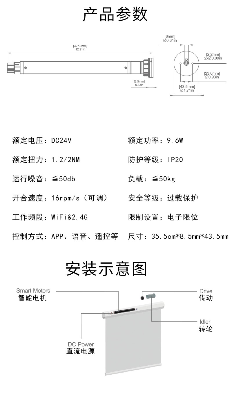 M2805EGZT插電型管狀窗簾電機
