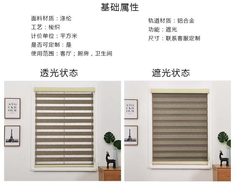材質(zhì):滌綸 工藝:梭織 尺寸:支持定制 功能:遮光 適用范圍:客廳、廚房、衛(wèi)生間