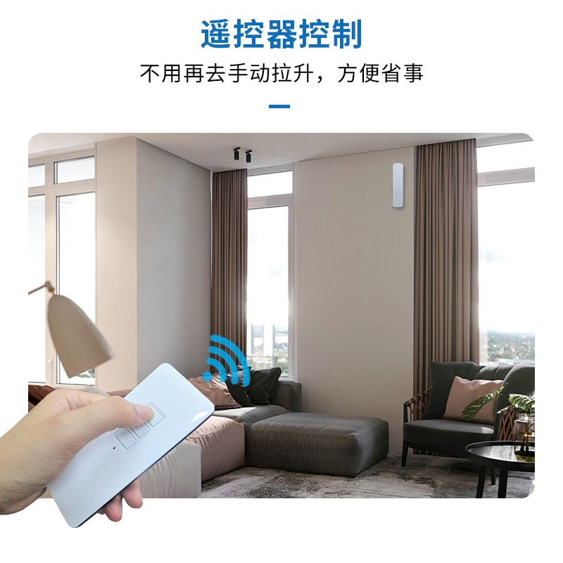 此產(chǎn)品適用于拉珠卷簾,可以把傳統(tǒng)的拉珠卷簾改變?yōu)橹悄茈妱哟昂?,安裝簡單,操作方便。安裝后可通過遙控器、語音、手機(jī)APP等控制窗簾升降。